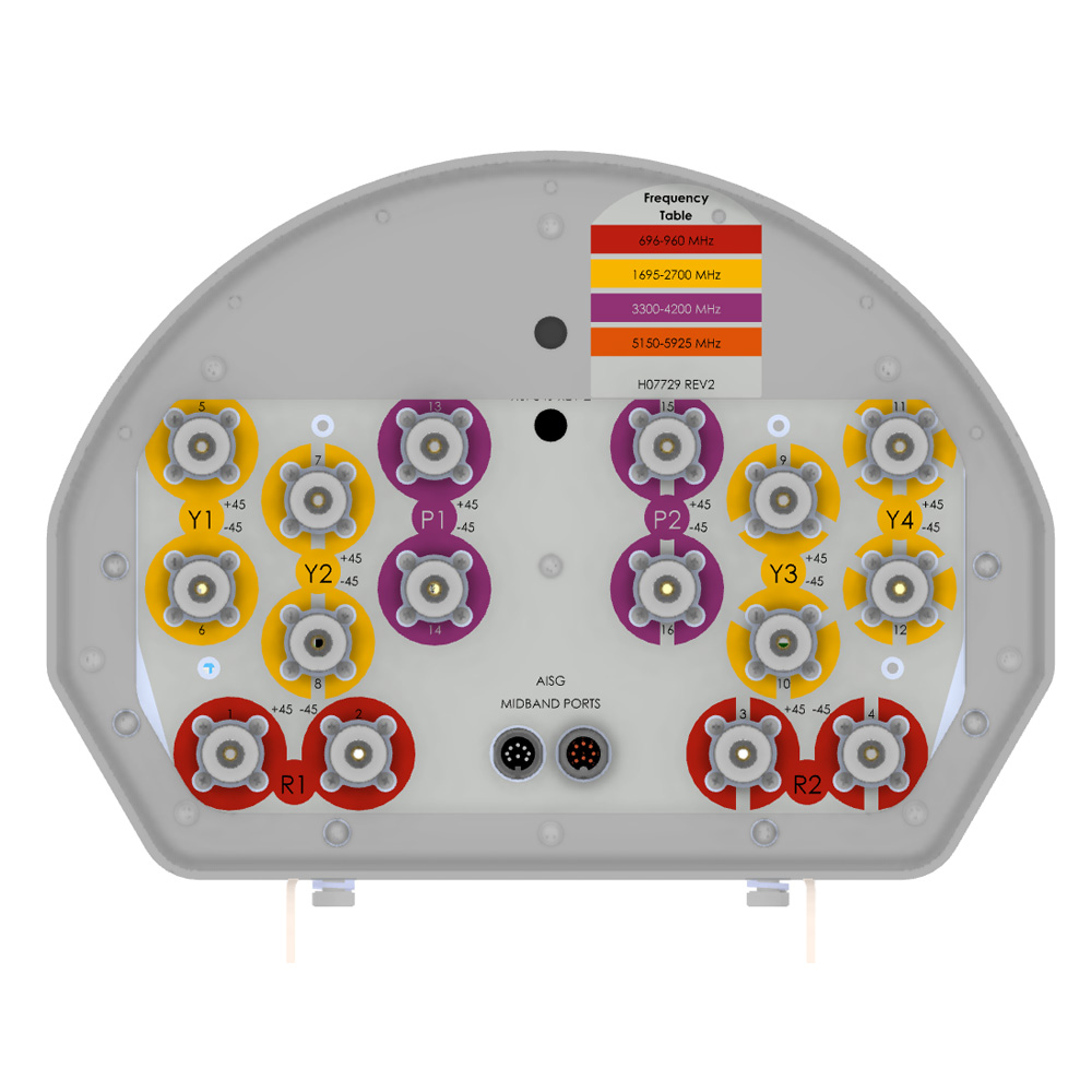 - 16 total connectors to service the 696-960, 1695-2700 and 3300-4200 MHz bands